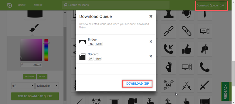 最後打開右上角收集區,點「DOWNLOAD.ZIP」把加進去的檔案通通下載。