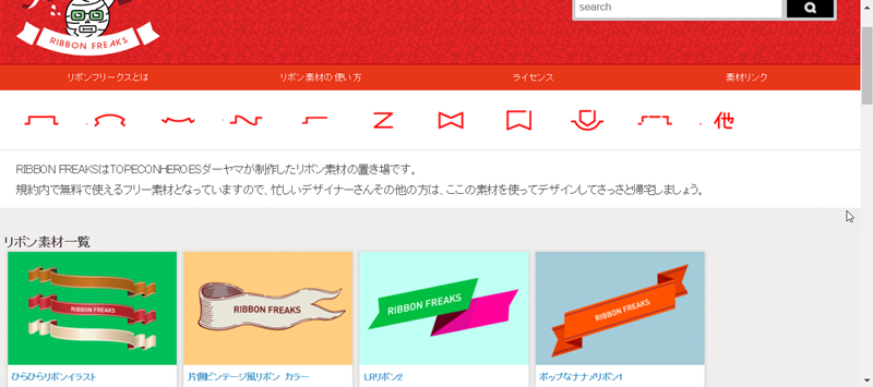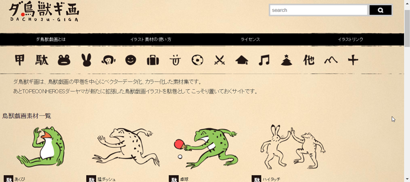 最後來介紹一個日本的網站,這個網站走日式可愛風,都是以扁平化設計的素材,首頁一樣可搜尋或從類別進入。