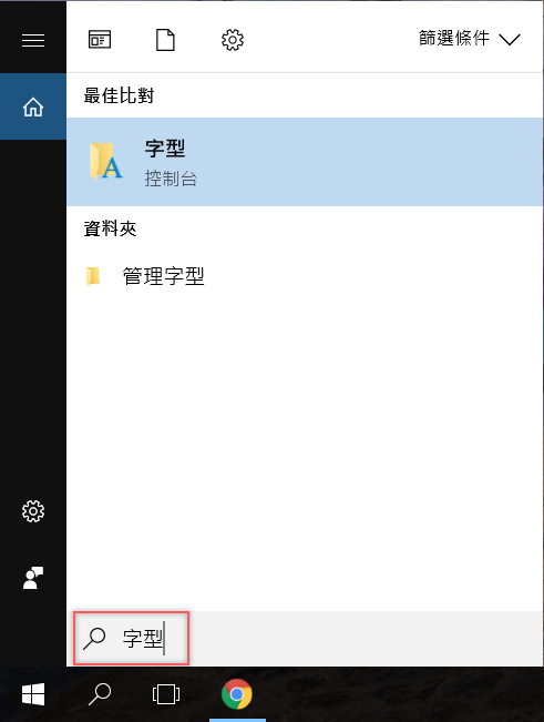 螢幕左下角放大鏡搜尋「字型」,第一個位於控制台的資料夾就是了,點進去。