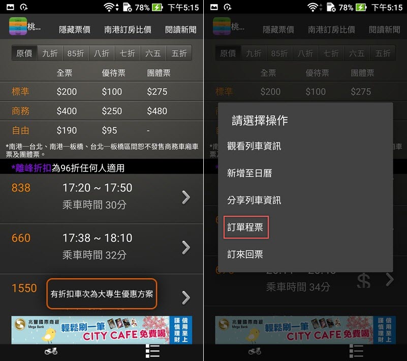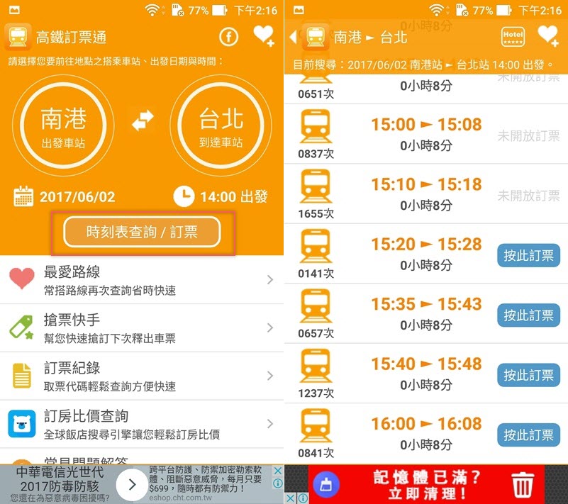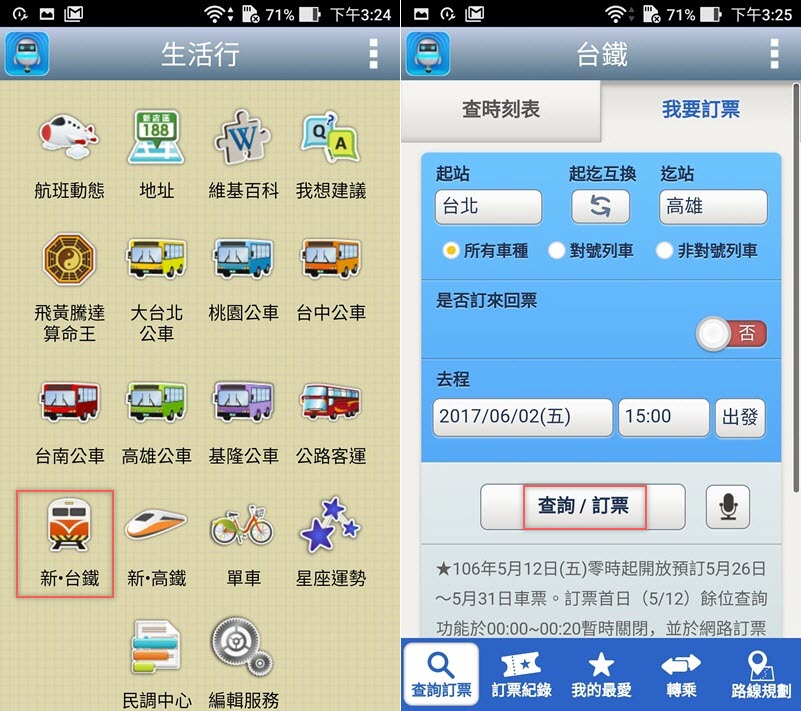 生活行有些品牌的手機預設就有裝,其中也有台鐵和高鐵的訂票功能。
