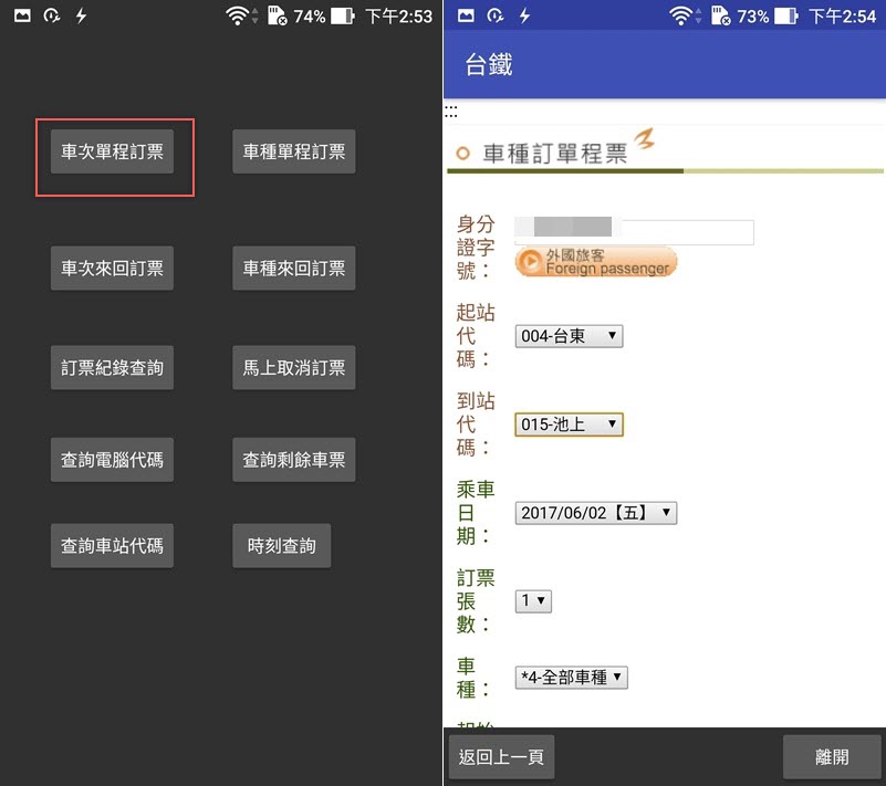 也能從餘票查詢區搜尋剩餘車票後再開始訂,一樣選好要坐的車並輸入身分證字號。