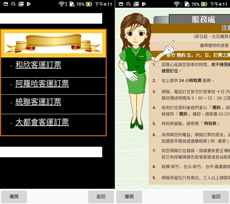 客運能訂票的相關 APP 真的很少,最後這個提供了和欣、阿羅哈、統聯、大都會可訂。