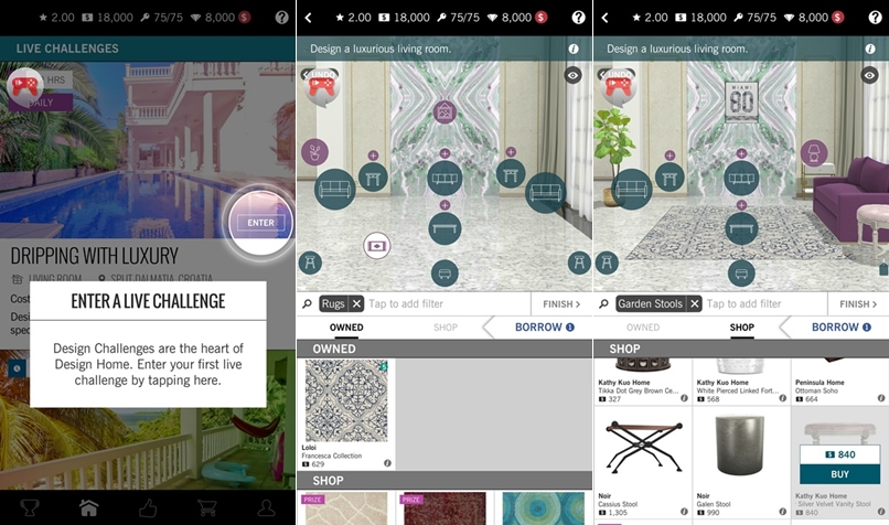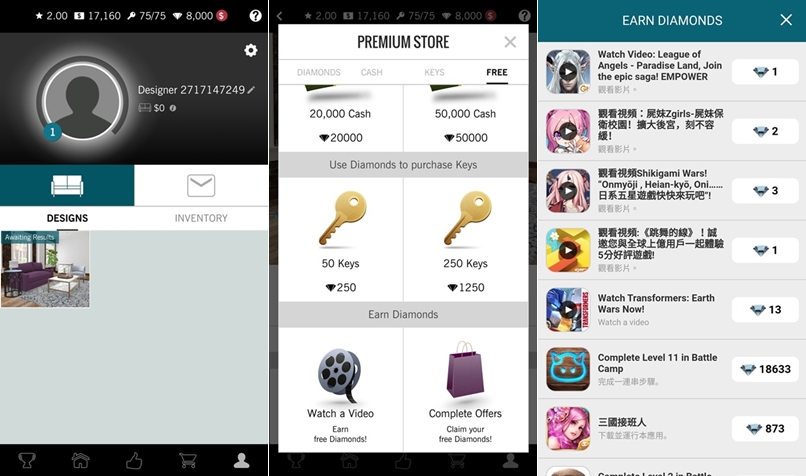 接下來會帶你瀏覽 APP 的所有功能,包括不同的任務可以點進去一個個挑戰,不過有的家具是要花鑽石(遊戲幣)的。