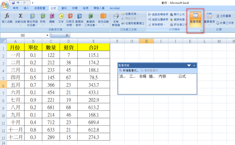 設定上也不難,從上方切換到公式頁籤,找到「監看視窗」點下去就會出現。