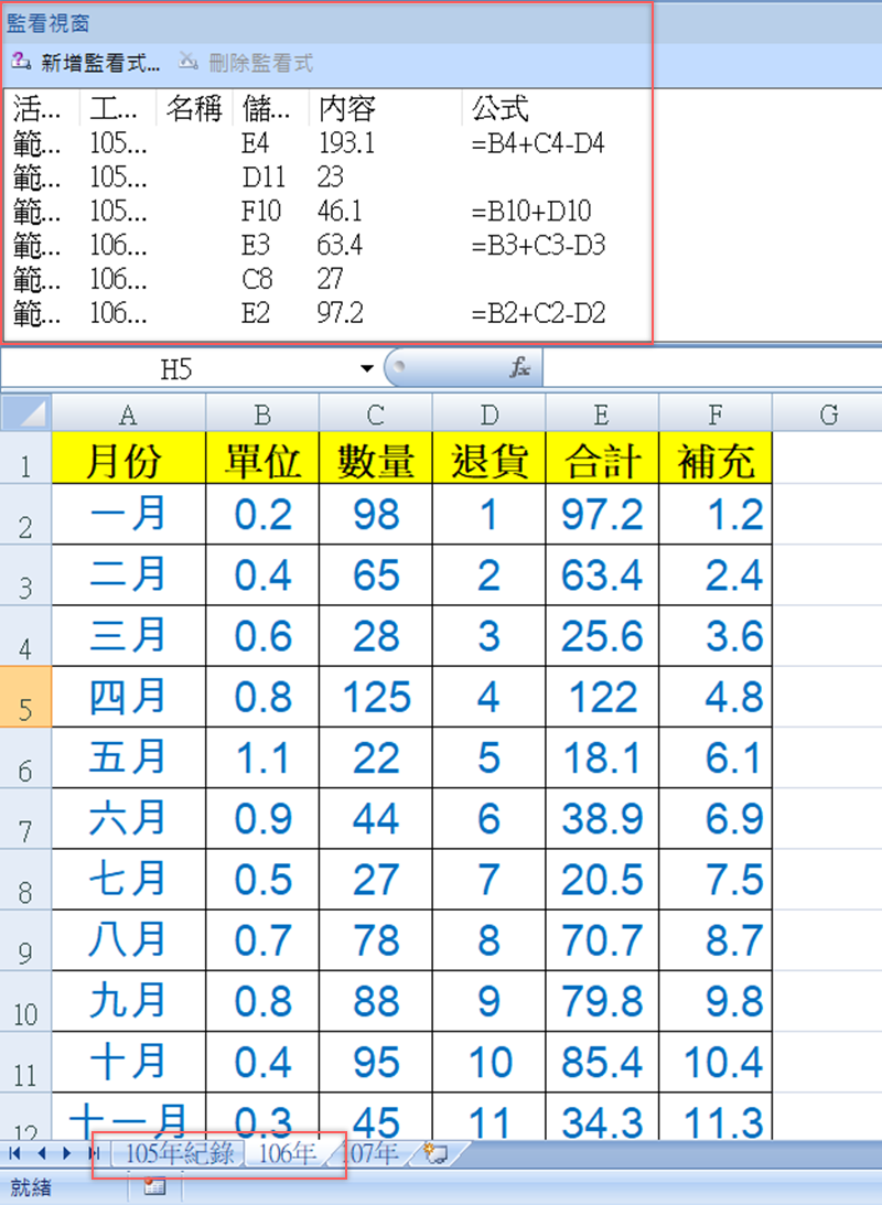 當你跳到另一個工作表,監看視窗沒關掉的話還是會在上面,只要是同一份 Excel 文件中的工作表都可以互相監視,一樣加進去即可。