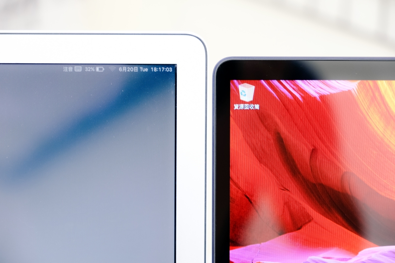一樣再來和 Macbook Air 比較一下,以肉眼看起來幾乎是比 Air 再少一半以下,非常的窄。