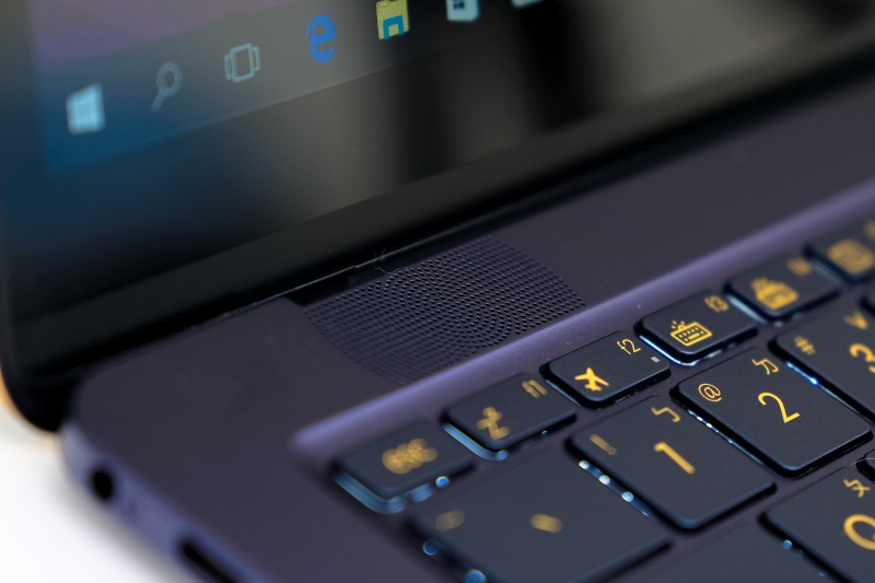 前面我們提到,ZenBook 3 Deluxe UX490 一共搭載四顆 Karman Kardon 的喇叭,除了底部搭配二顆之外,另外二個喇叭分散在鍵盤的左上及右上,讓聲效擁有環繞感受。