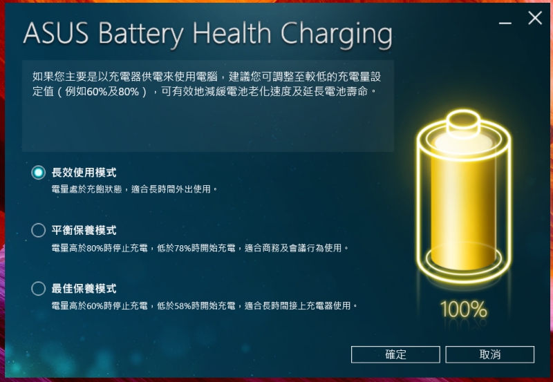 搭載自家的電源管理工具,共有三種模式可以選擇,讓你更有效的減緩電池老化的速度並延長壽命。