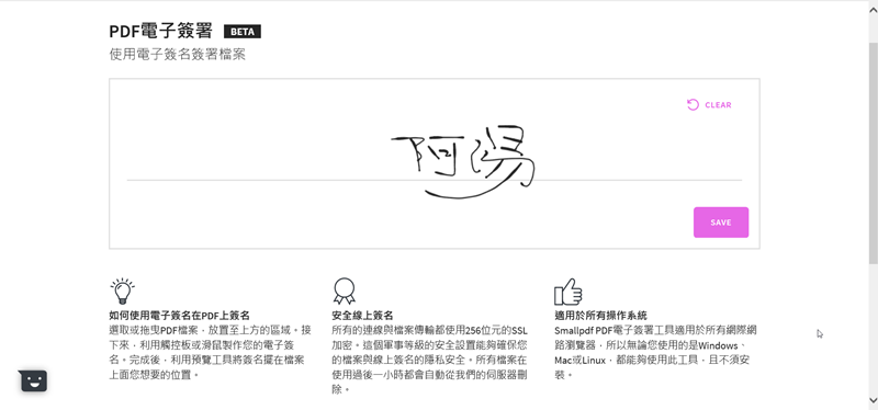 阿湯換用 IE 開啟網頁,果然又可以用了(後來試過用 Chrome 開啟無痕分頁也可以),來試試電子簽署,目前還是 Beta 版,一樣加入檔案。