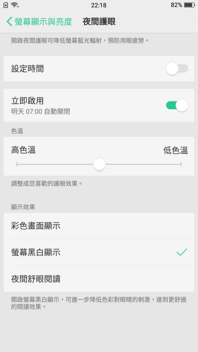 一般夜間護眼功能都是過濾藍光,畫面就會變的比較偏黃一些,在 ColorOS 3.1 中再加入「夜間黑白模式」,有些內容切換成黑白模式時會讓眼睛更加的舒適。