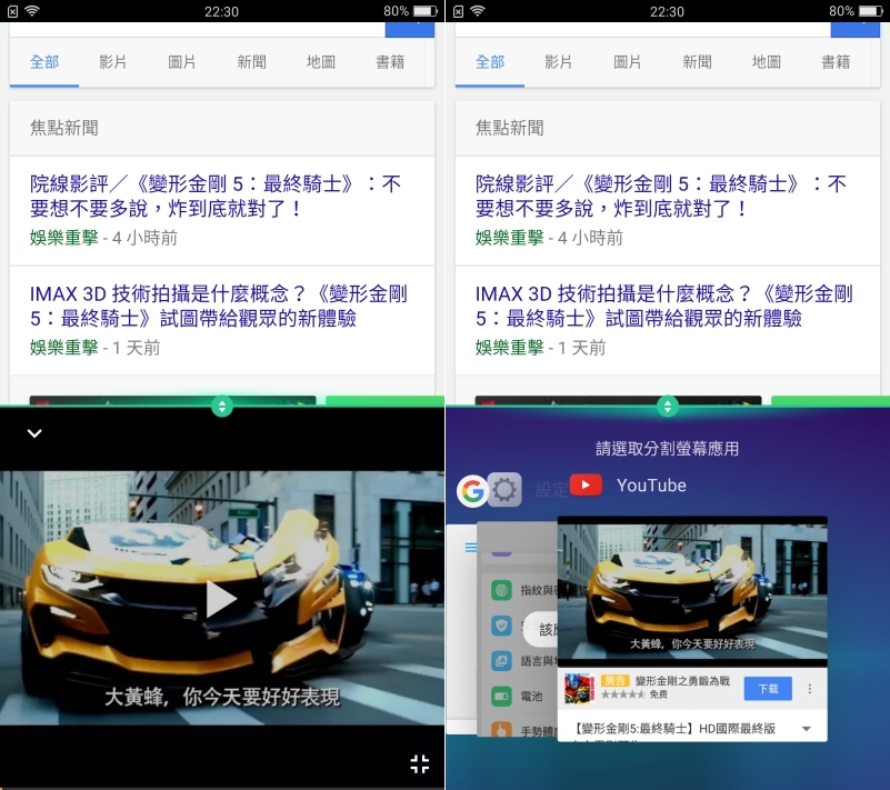 這次也加入了分割模式,讓你可以一心二用,像是上網的同時也能看 YouTube 影片,阿湯就喜歡在邊看電影預告片時邊去查看相關內容。