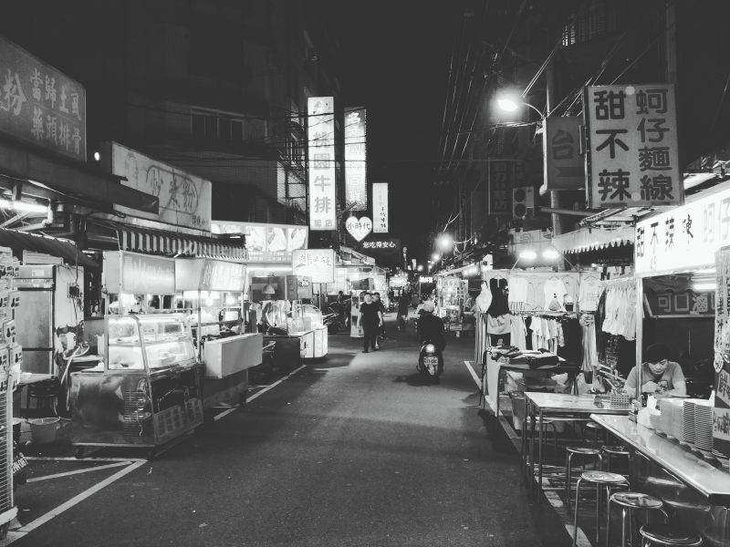 而相機內建的濾鏡,也要好好的運用,像剛上面的夜間拍攝照片中,有一張夜市,利用黑白模式拍攝後,就讓畫面充滿了復古感,感受全然不同。