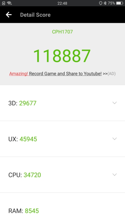 安兔兔獲得的分數為 118887 分。
