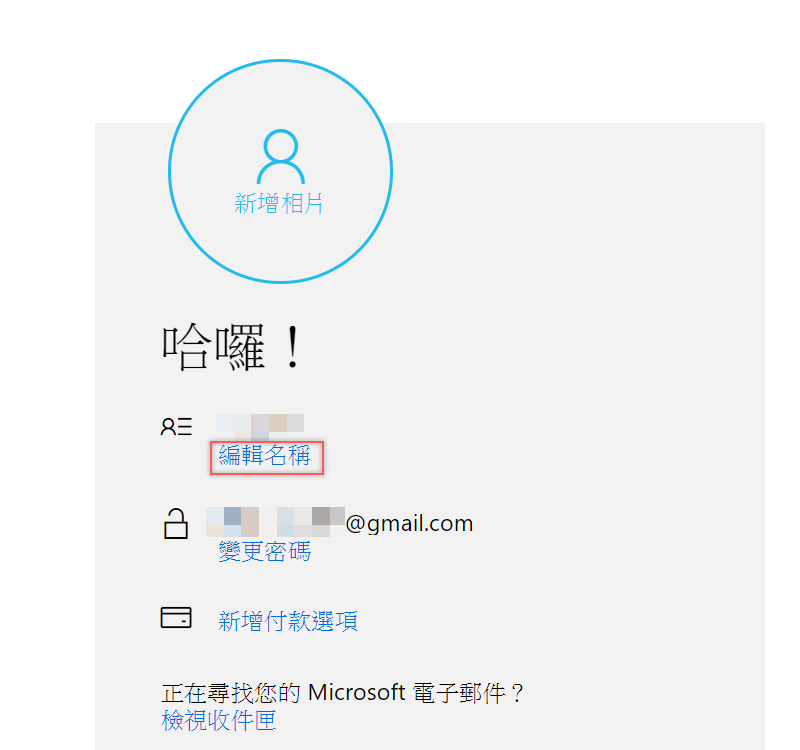 到電子郵件與 APP 帳戶來更改微軟帳號資訊。
