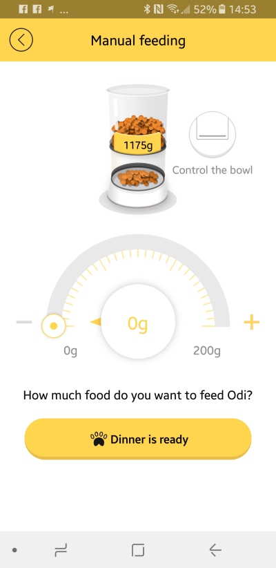右上角有個 Control the bowl,可以手動控制飼料盆的伸縮。