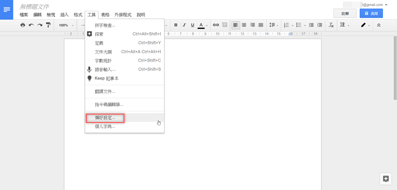 再來是關於內文取代的方法,點工具,往下看到「偏好設定」。