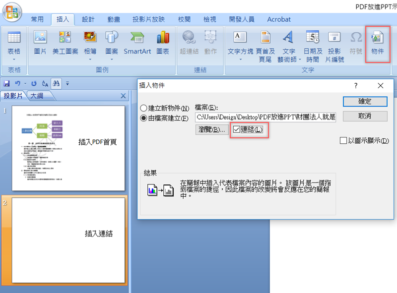 將 PDF 檔放進 PowerPoint 中的方法
