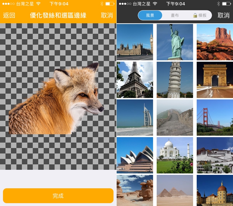 目前只有 iOS 版,如果直接搜尋可能會搜到簡體字的版本,但都是一樣的,首頁有 22 種合成模式可選擇,先進入第一種,來置入一張狐狸的照片。
