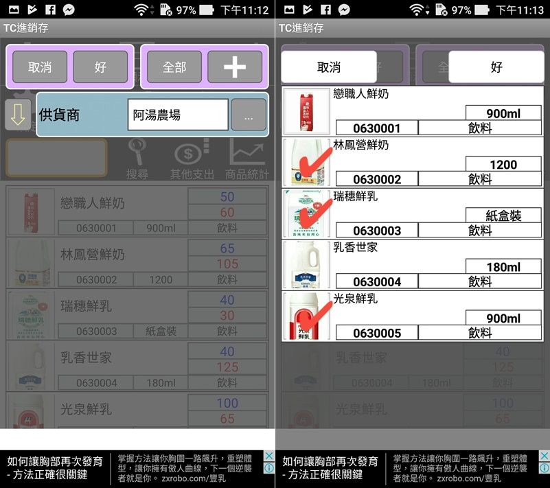 輸入每項商品的進貨數量,完成就點左上角「好」。