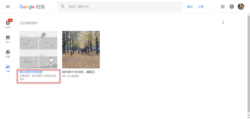 分享區就會出現剛剛新增的相簿,點進去看看。