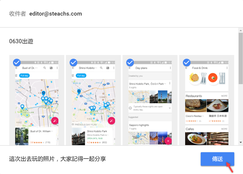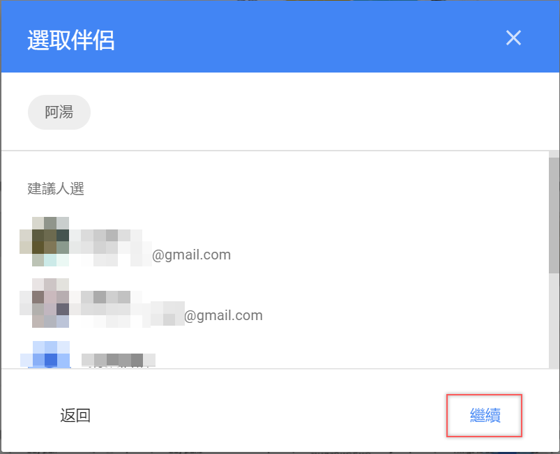 選擇共享的人,可輸入 Email(非 Gmail 也可以),下方也會幫你建議人選。