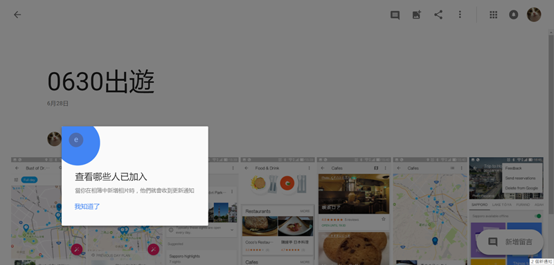 如果邀請的朋友很多,可查看那些人已加入,一旦新增相片有加入的人都會收到通知。