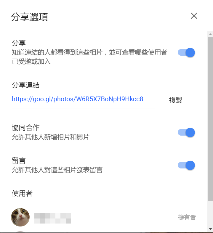 選取使用者,授權之後這個人可以隨時存取你相簿中的所有相片,只能選取一位。