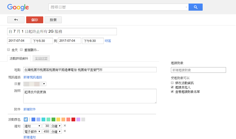 接著就會開啟 Google 日曆分頁,並自動將反白的文字帶入標題,時間會先預設最近的時段,再直接進行編輯即可,內容當然都可以自行更改,這樣慣用 Google 日曆的朋友們就能更方便新增項目了。
