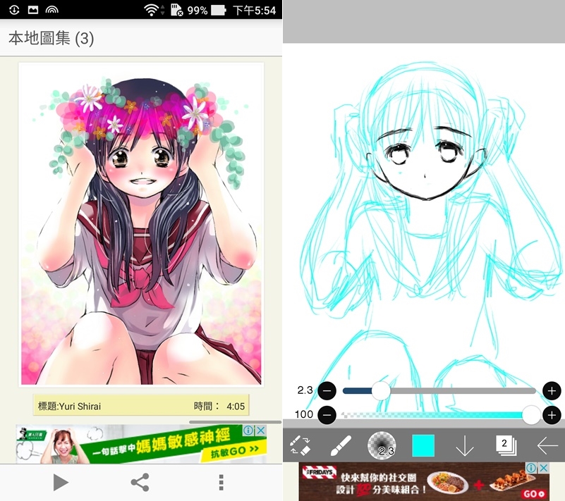 先跳到本地圖集看看人家的作品好了,點底下播放鍵就看到人家繪畫的過程,可供學習參考。
