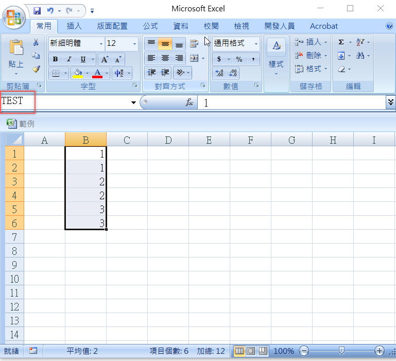 最後是 Excel,也是要先去用來插入的 Excel 檔內編輯,先選取要顯示的部分,然後在左上方空白列隨意設一個名稱,例如「TEST」,輸入後按 Enter。