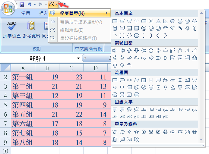 不喜歡註解視窗的形狀也能更改,左上角點開到底下「Excel 選項」,然後到自訂,選擇所有命令,再往下滑找到「編輯圖案」,大概在下面五分之一的地方,點新增。