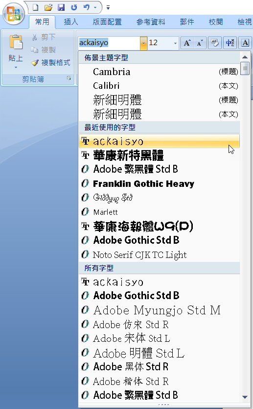 打開 Word 檔搜尋字體吧。