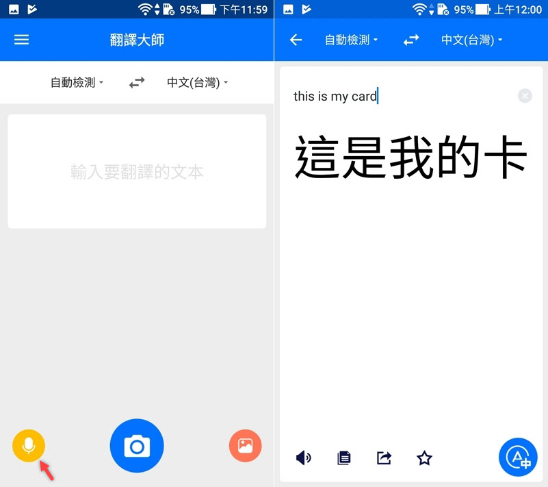 點麥克風說話即可,阿湯這次都在有點吵的地方測試,轉換的速度很快,但要注意咬字清晰,也不建議講太快。