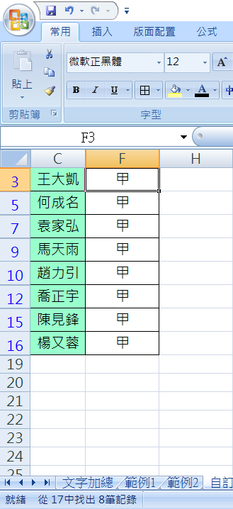 結果考績甲等的人名就會被篩選出來,共 8 位。
