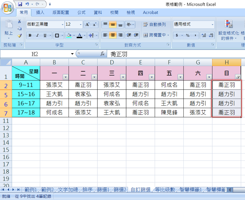 像這個例子其實也可以打開篩選清單後,直接在內容勾選要顯示的人名即可,但如果要進行更多設定,還是要自訂篩選囉。