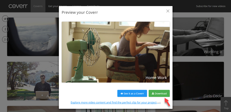 像技術題材就有一些打鍵盤、會議相關的影片,像阿湯如果要跟大家形容自己的工作就可以用 Home Work 這個檔案,可點「See as a Coverr」放大檢視或直接下載。