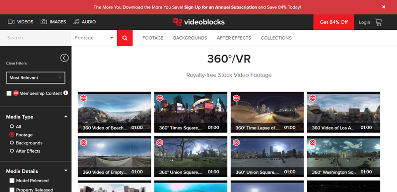 選個 VR 類看看,由於需要 360 度實景所以大部分都有 1 分鐘以上,左欄可進階篩選。