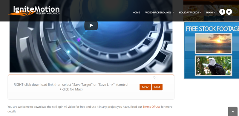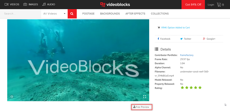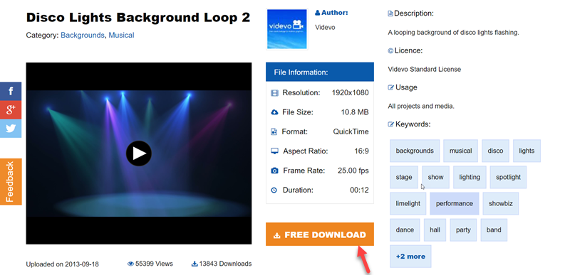 點進去可看到影片簡介的內容,包含長度、大小、比例、解析度都很清楚,縮圖下方還有預覽與下載次數,點 FREE DOWNLOAD 就自動下載。