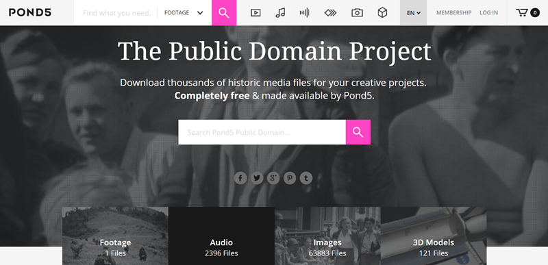 這個網站除了影片還有音樂、音效、圖片等素材,內容豐富且以畫面復古的歷史題材為主,相當特別。