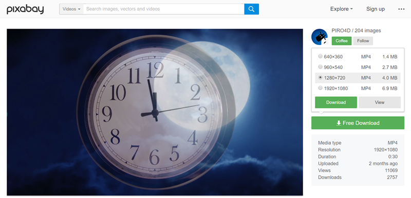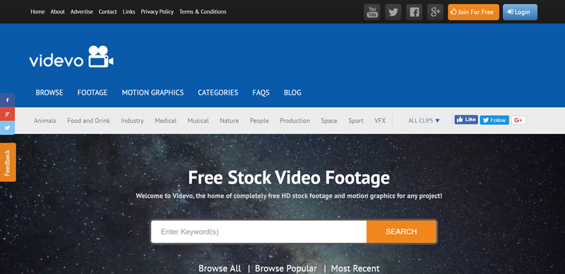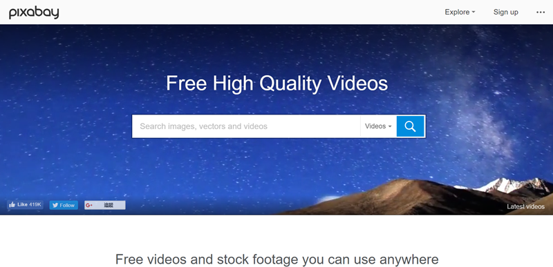 這個網站蠻熱門的,可除了提供豐富的素材也可上傳自己製作的影片,全站免費免版權限制。