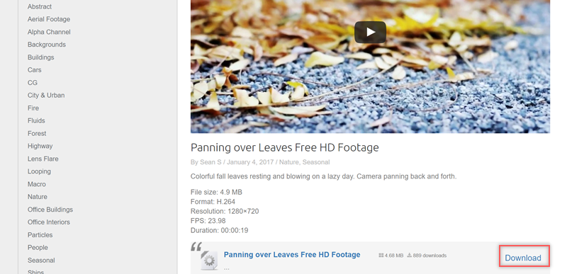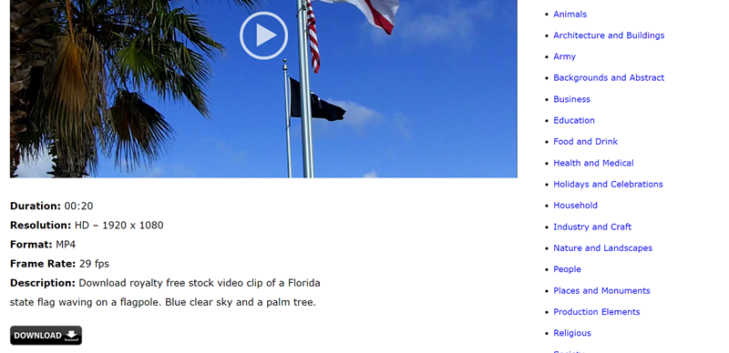 首頁輸入關鍵字或按分類、最新搜尋,類別也是較偏自然風景與活動,網站內都是免費可商用,但有的影片會連結到其他可能下載要付費的網站。