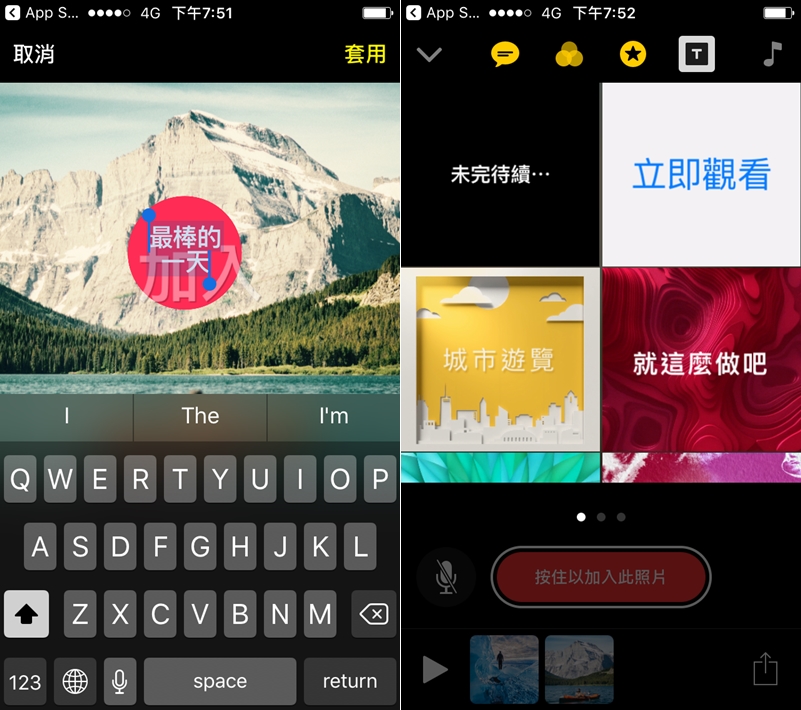 圖案中的文字當然也可以更改,還有內建的背景配字幕可選擇。