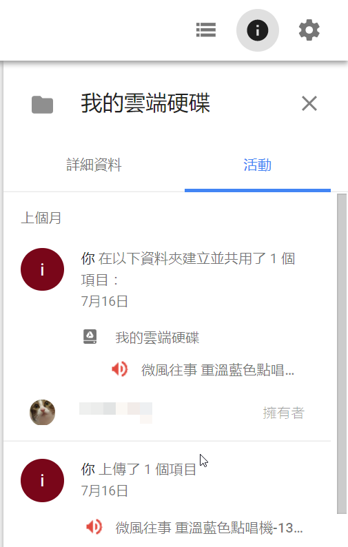 在雲端硬碟裡的活動都會有紀錄,可以往下翻翻看你做了什麼動作,但這一項比較適合最近處理的檔案,如果你根本不記得它什麼時候消失,那就用進階搜尋吧。