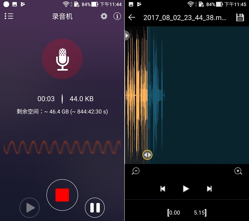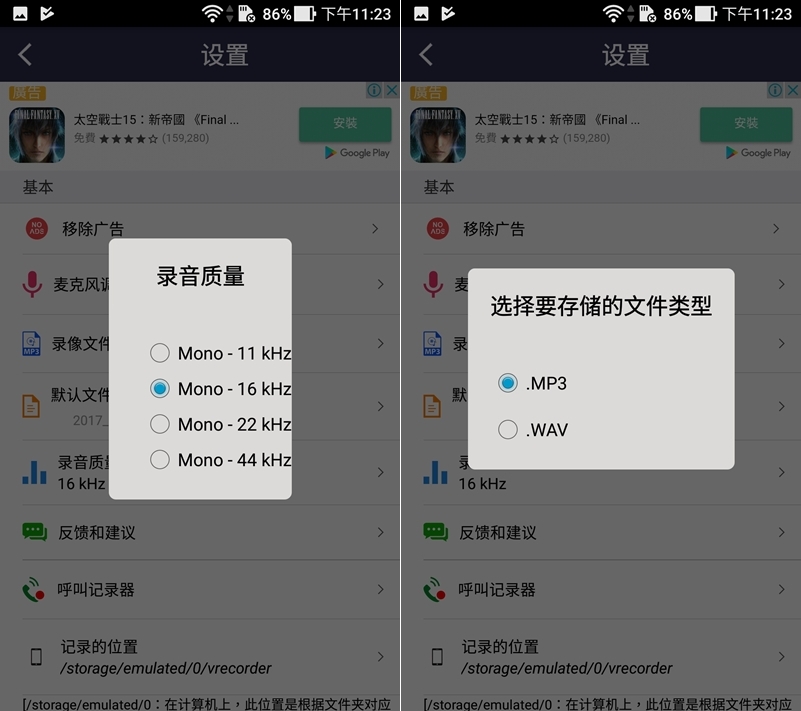 預設高清音質可調整,剩餘時間與空間也會同步,支援後台錄音,不過聲音有點小,雙版本。