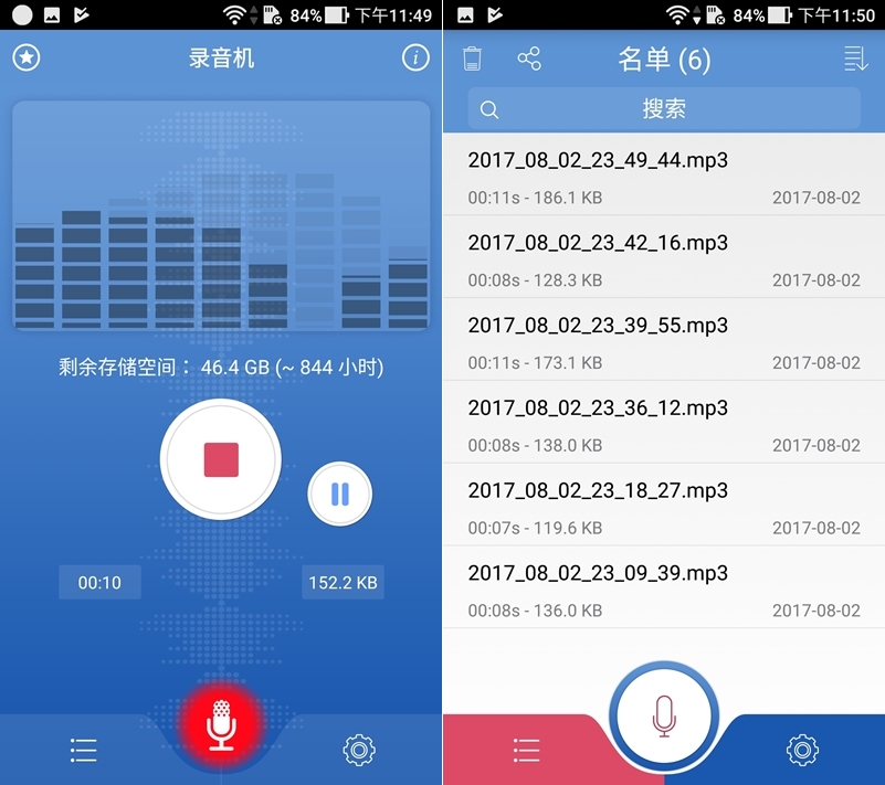 這類 APP 用起來多半非常直覺,首頁點圖示就開始錄,錄完自動儲存,像這款會顯示可錄製的剩餘時間並幫你存在 SD 卡,點 Play 鍵播放即可,聲音夠清,但如果放很大聲會有點雜音。
