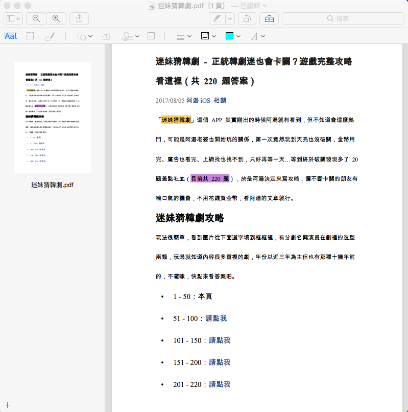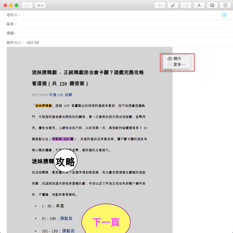 完成後將檔案傳送至郵件,如果這時發現還有需要補充的,不用回去重新編輯再傳一次,只要在 PDF 檔的右上角點「標示」。