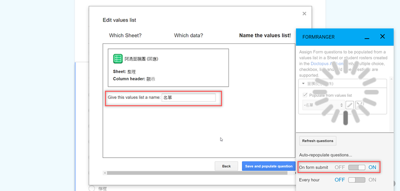 最後輸入一個名稱,再記得開啟「On form submit」讓它自動更新,就完成了。