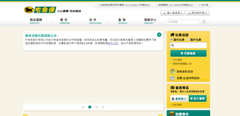日本出產的黑貓也是常見的宅急便,特點是有分常溫、低溫、經濟、機場、高爾夫、當日、到付類別,還有 APP 可預約寄件免出門。