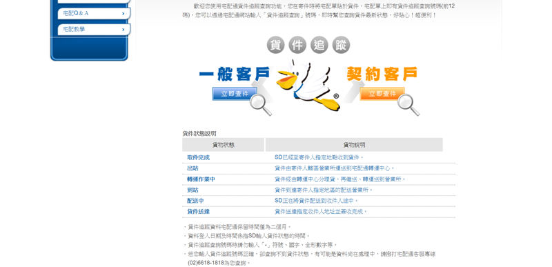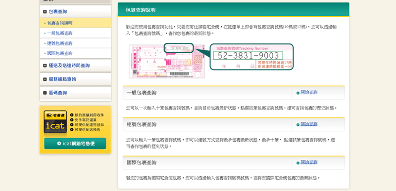 查詢區分一般、連號、國際,並保留三個月的資料,還可參考運送時段與送達時間試算。