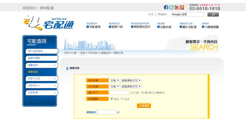 運費計算較特別,是以尺寸(長寬高相乘)和重量,兩者取其大,並看有沒有報值等加價項目。